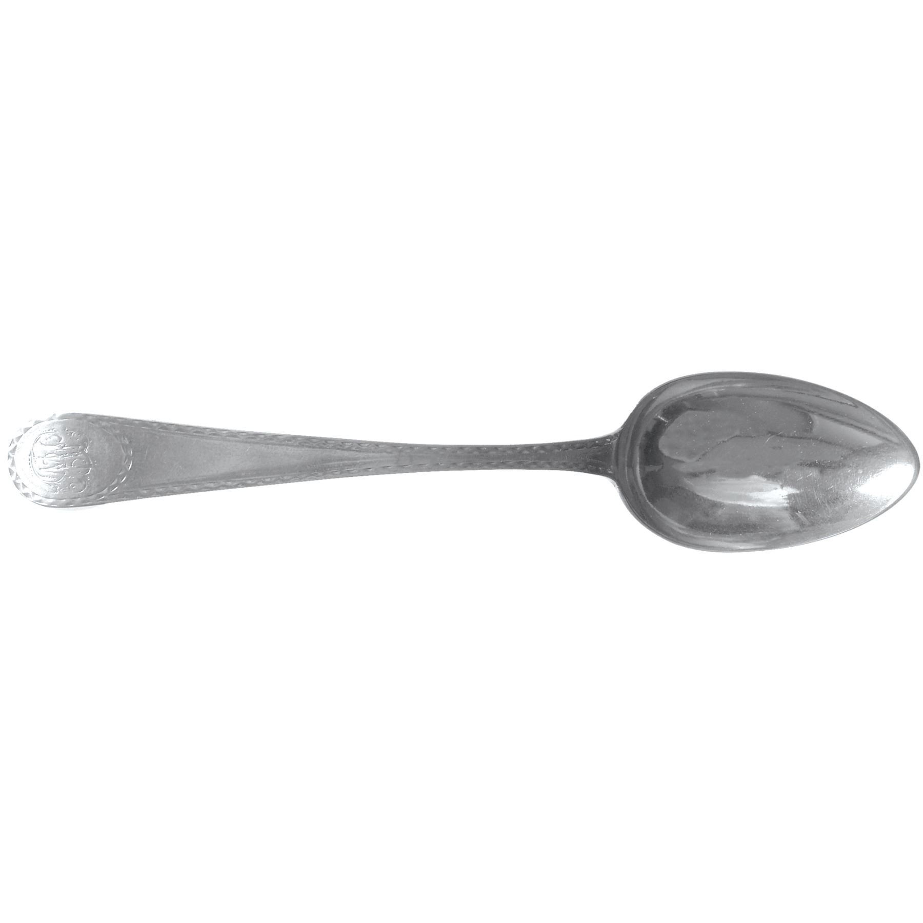 Joseph and Nathaniel Richardson (c. 1785-1791) Engraved Coin-Silver Dinner Spoon. Philadelphia, Pennsylvania Silversmiths, Extremely Fine.