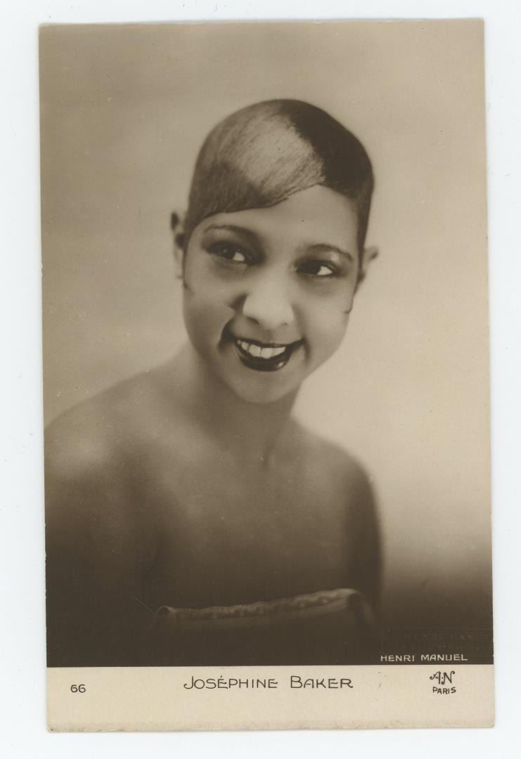 Photograph taken by Henri Manuel in Paris. Josephine Baker (1906–1975) was a groundbreaking American-born French dancer, singer, and actress who became a superstar in 1920s Paris, known for her "banana dance". Escaping US segregation, she became a French Resistance spy during WWII, a civil rights activist, and the first Black woman honored in the French Pantheon.