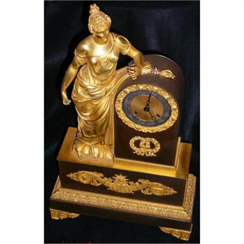 Ormolu (from French or moulu, signifying gold ground or pounded) is an 18th-century English term for applying finely ground, high-karat gold to an object in bronze. The French refer to this technique as bronze doré, which is used to this day though the item may be merely painted with a gold-tone paint. The modern term in English is gilt bronze, which bears no relation to ormolu in process or materials. A later substitute of a mixture of metals resembling ormolu was developed in France and called pomponne, though, confusingly, the mix of copper and zinc, sometimes with an addition of tin, is technically a type of brass. Actual ormolu pieces by strict definition are rare, as they were no longer produced after the 1830s because of their impractical cost and health risks. /Ormolu