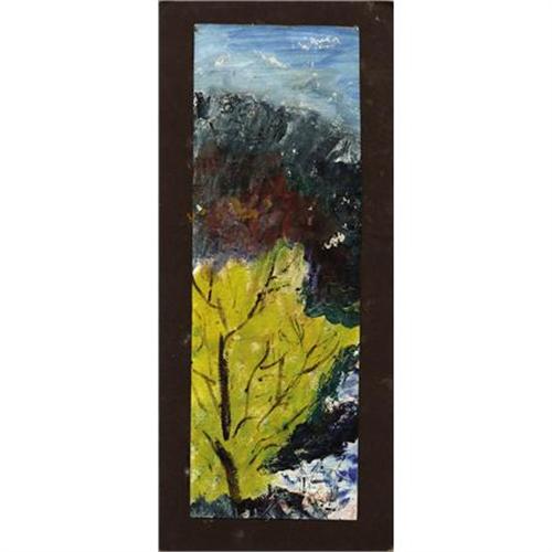 <B>Josephine Mahaffey</B></I> (American 1903-1982)<B><BR></B></I><I>Landscape<BR></B></I>Acrylic on canvas, mounted on mat board<BR>15-1/2 x 6-3/4 inches (39.4 x 17.1 cm)<BR>Unsigned<BR> <BR>Josephine Mahaffey attended the College of Industrial Arts (now Texas Woman's University) and after graduation continued her studies with Sallie Blythe Mummert. Additional instruction was with Clinton King, Octavio Medellin, Kathleen Lawrence, and John Erickson. For many years she ran her own art gallery in Azle and taught watercolor classes in Fort Worth. Josephine was a fixture at Fair Park and the State Fair of Texas selling her art. In 1968, she was honored with the naming of "Josephine Mahaffey Day" at the State Fair of Texas.<BR><BR> <B>Condition Report:</B> Normal signs of wear as appropriate with age; some areas of paint loss.<BR><BR><b>Shipping:</b> Flat Material, Small (<a target="_blank" href="http://www.heritageauctions.com/common/shipping.php">view shipping information</a>)
