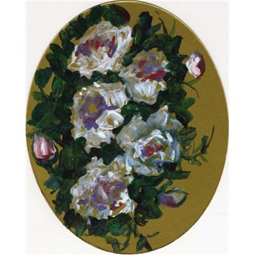 <B>Josephine Mahaffey</B></I> (American 1903-1982)<B><BR></B></I><I>Flowers<BR></B></I>Acrylic on metallic mat board<BR>13-1/2 x 11 inches (34.3 x 27.9 cm)<BR>Unsigned<BR> <BR>Josephine Mahaffey attended the College of Industrial Arts (now Texas Woman's University) and after graduation continued her studies with Sallie Blythe Mummert. Additional instruction was with Clinton King, Octavio Medellin, Kathleen Lawrence, and John Erickson. For many years she ran her own art gallery in Azle and taught watercolor classes in Fort Worth. Josephine was a fixture at Fair Park and the State Fair of Texas selling her art. In 1968, she was honored with the naming of "Josephine Mahaffey Day" at the State Fair of Texas.<BR><BR> <B>Condition Report:</B> Normal signs of wear as appropriate with age.<BR><BR><b>Shipping:</b> Flat Material, Small (<a target="_blank" href="http://www.heritageauctions.com/common/shipping.php">view shipping information</a>)