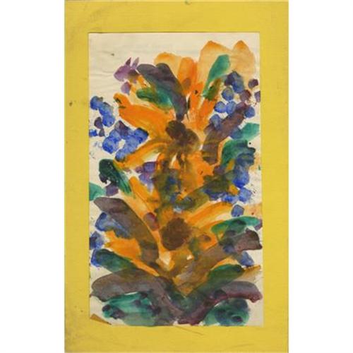 <B>Josephine Mahaffey</B></I> (American 1903-1982)<B><BR></B></I><I>Flowers</B></I><BR>Watercolor on paper, mounted on mat board<BR>10 x 6-1/4 inches (25.4 x 15.9 cm)<BR>Unsigned<BR> <BR>Josephine Mahaffey attended the College of Industrial Arts (now Texas Woman's University) and after graduation continued her studies with Sallie Blythe Mummert. Additional instruction was with Clinton King, Octavio Medellin, Kathleen Lawrence, and John Erickson. For many years she ran her own art gallery in Azle and taught watercolor classes in Fort Worth. Josephine was a fixture at Fair Park and the State Fair of Texas selling her art. In 1968, she was honored with the naming of "Josephine Mahaffey Day" at the State Fair of Texas.<BR><BR> <B>Condition Report:</B> Minor rippling to paper.<BR><BR><b>Shipping:</b> Flat Material, Small (<a target="_blank" href="http://www.heritageauctions.com/common/shipping.php">view shipping information</a>)