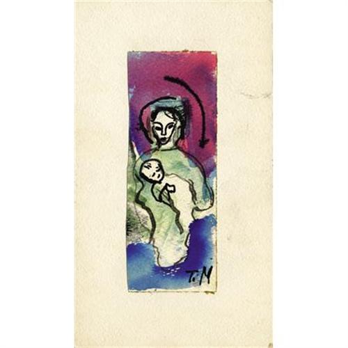 <B>Josephine Mahaffey</B></I> (American 1903-1982)<B><BR></B></I><I>Portrait of Mother and Child</B></I><BR>Watercolor on paper, mounted on mat board<BR>8-1/2 x 5 inches (21.6 x 12.7 cm)<BR>Signed lower right <I>TM</B></I><BR> <B>Condition Report:</B> Normal signs of wear as appropriate with age.<BR><BR><b>Shipping:</b> Flat Material, Small (<a target="_blank" href="http://www.heritageauctions.com/common/shipping.php">view shipping information</a>)