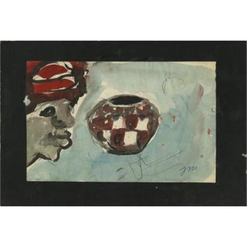 <B>Josephine Mahaffey</B></I> (American 1903-1982)<B><BR></B></I><I>Portrait </B></I><BR>Watercolor and charcoal on paper, mounted on mat board<BR>6-3/4 x 10 inches (17.1 x 25.4 cm)<BR>Signed lower right <I>JM<BR></B></I> <BR>Josephine Mahaffey attended the College of Industrial Arts (now Texas Woman's University) and after graduation continued her studies with Sallie Blythe Mummert. Additional instruction was with Clinton King, Octavio Medellin, Kathleen Lawrence, and John Erickson. For many years she ran her own art gallery in Azle and taught watercolor classes in Fort Worth. Josephine was a fixture at Fair Park and the State Fair of Texas selling her art. In 1968, she was honored with the naming of "Josephine Mahaffey Day" at the State Fair of Texas.<BR><BR> <B>Condition Report:</B> Normal signs of wear as appropriate with age.<BR><BR><b>Shipping:</b> Flat Material, Small (<a target="_blank" href="http://www.heritageauctions.com/common/shipping.php">view shipping information</a>)