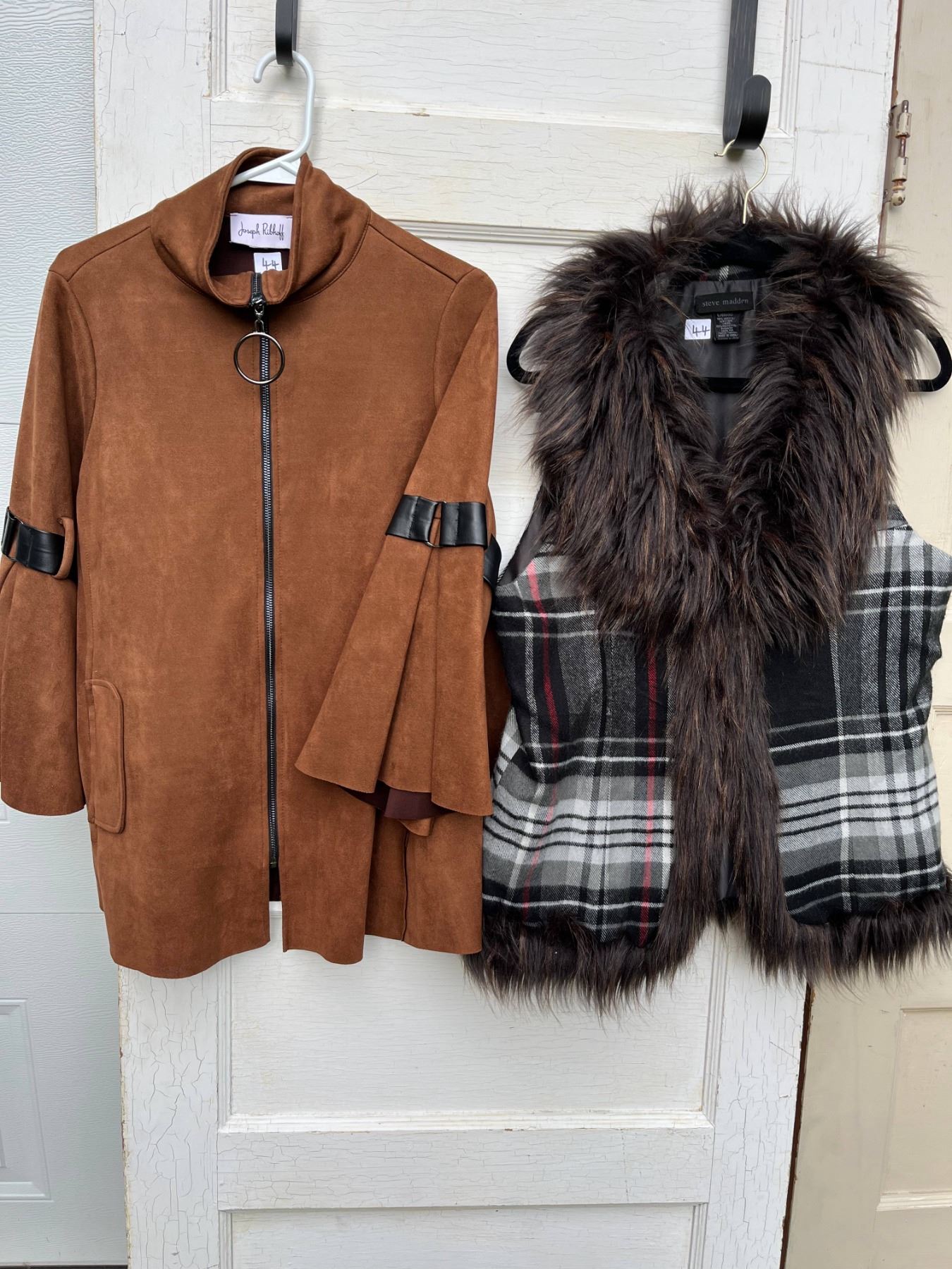 Josephribkoff light fuax suede jacket size M and steve madden faux fur trim vest size L