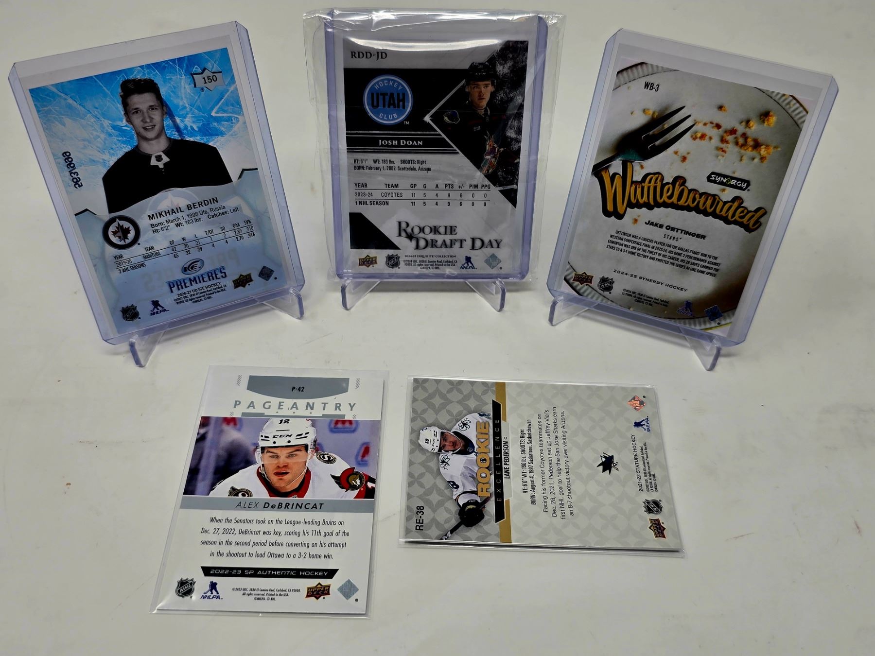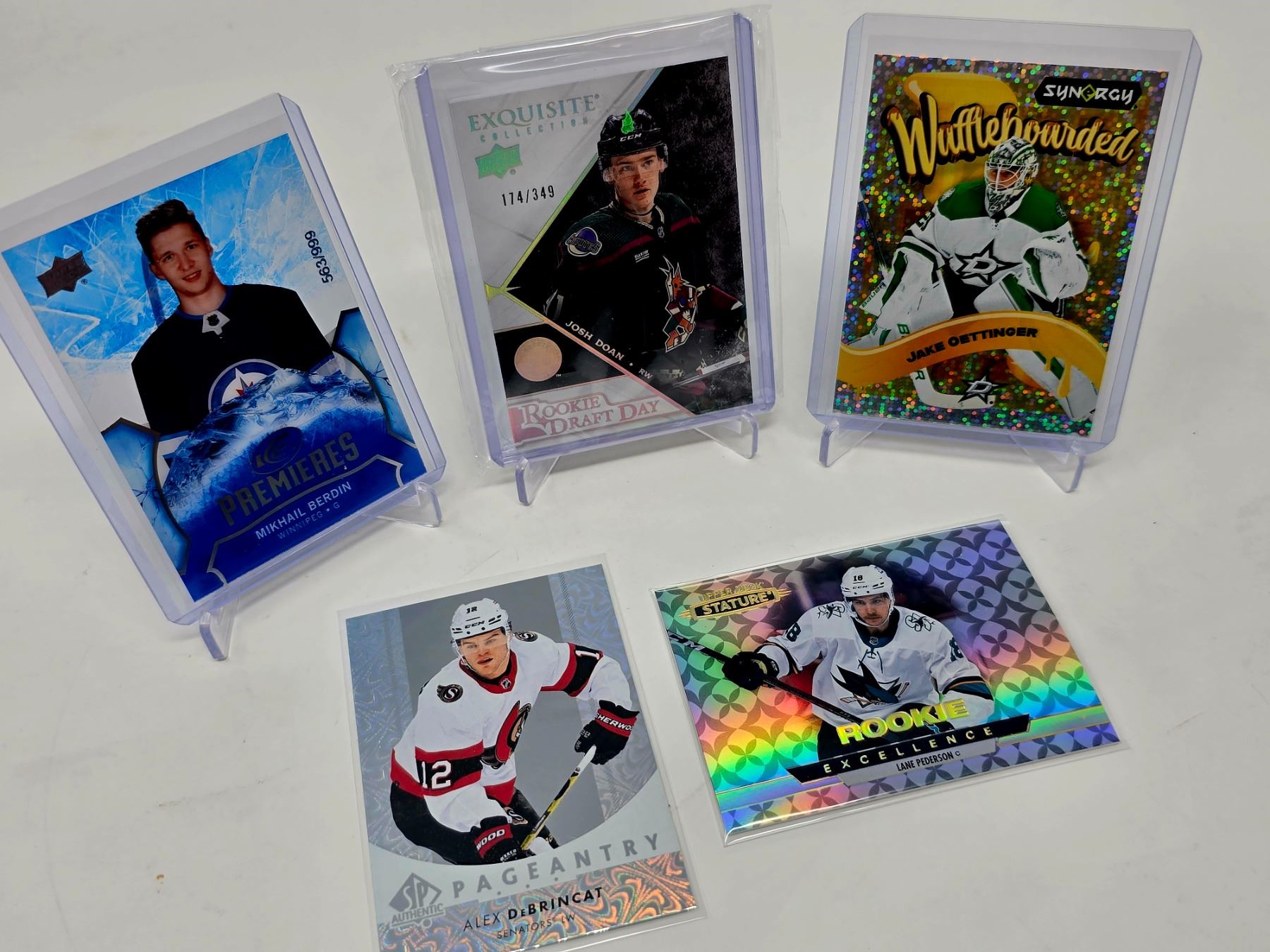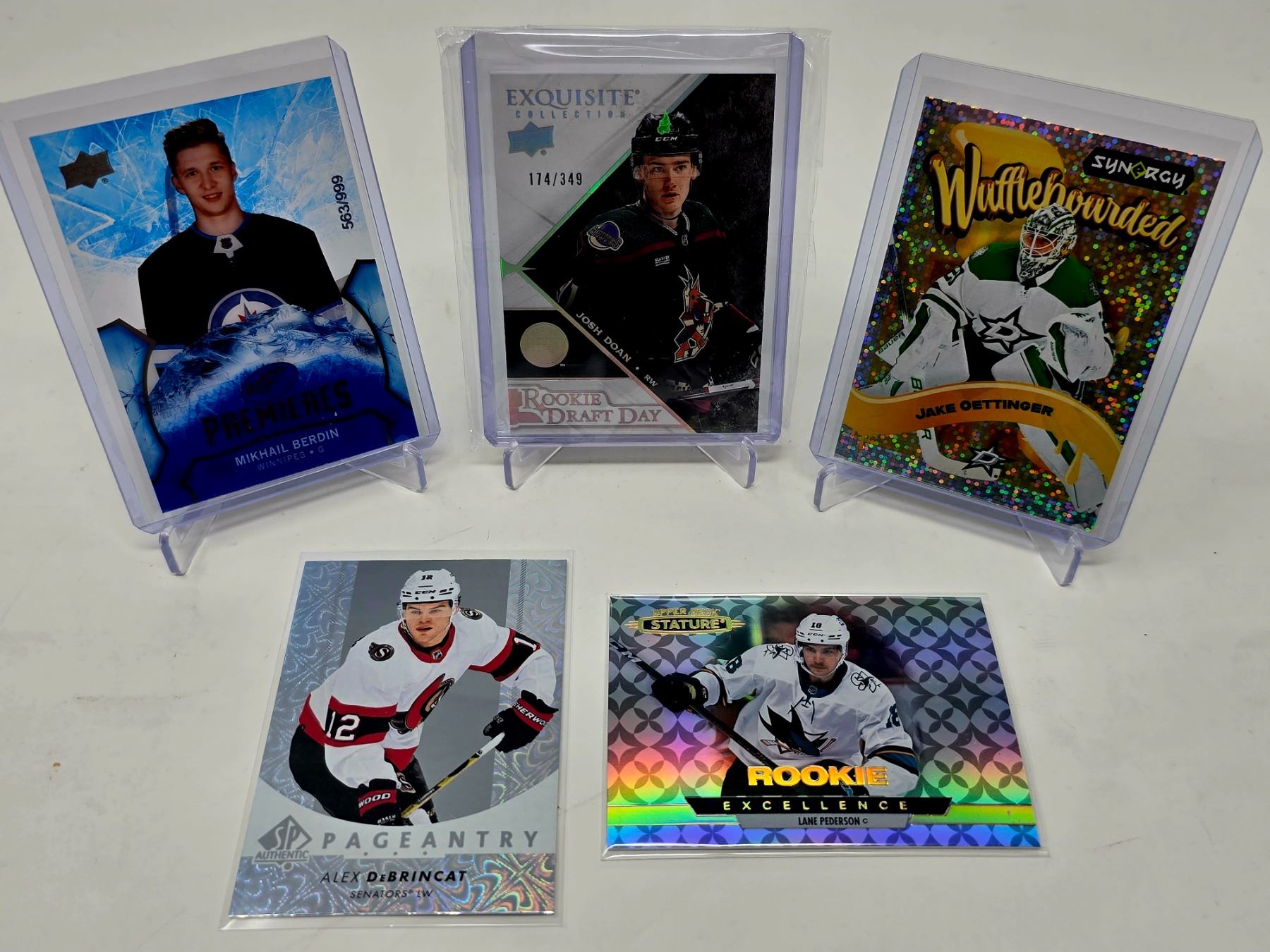 Includes Josh Doan Exquisite Patch /349, Jake Oettinger Waffleboarded Insert, Berdin /999 RC, DeBrincat Pageantry, Lane Pederson Stature Rookie.