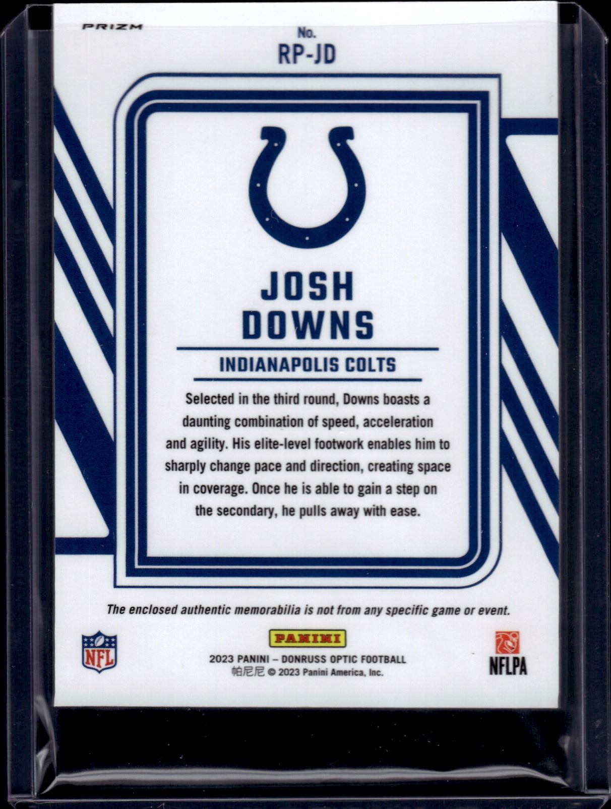 Josh Downs Blue Hyper Prizm Rookie Patch 2023 Optic #RP-JD