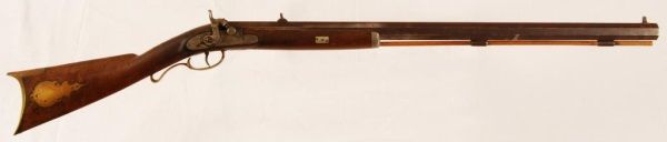 Powder/Ammo storage in rear stock, heavy octagon barrel, engraved side plate and hammer, flip up rear sight, 30" barrel.