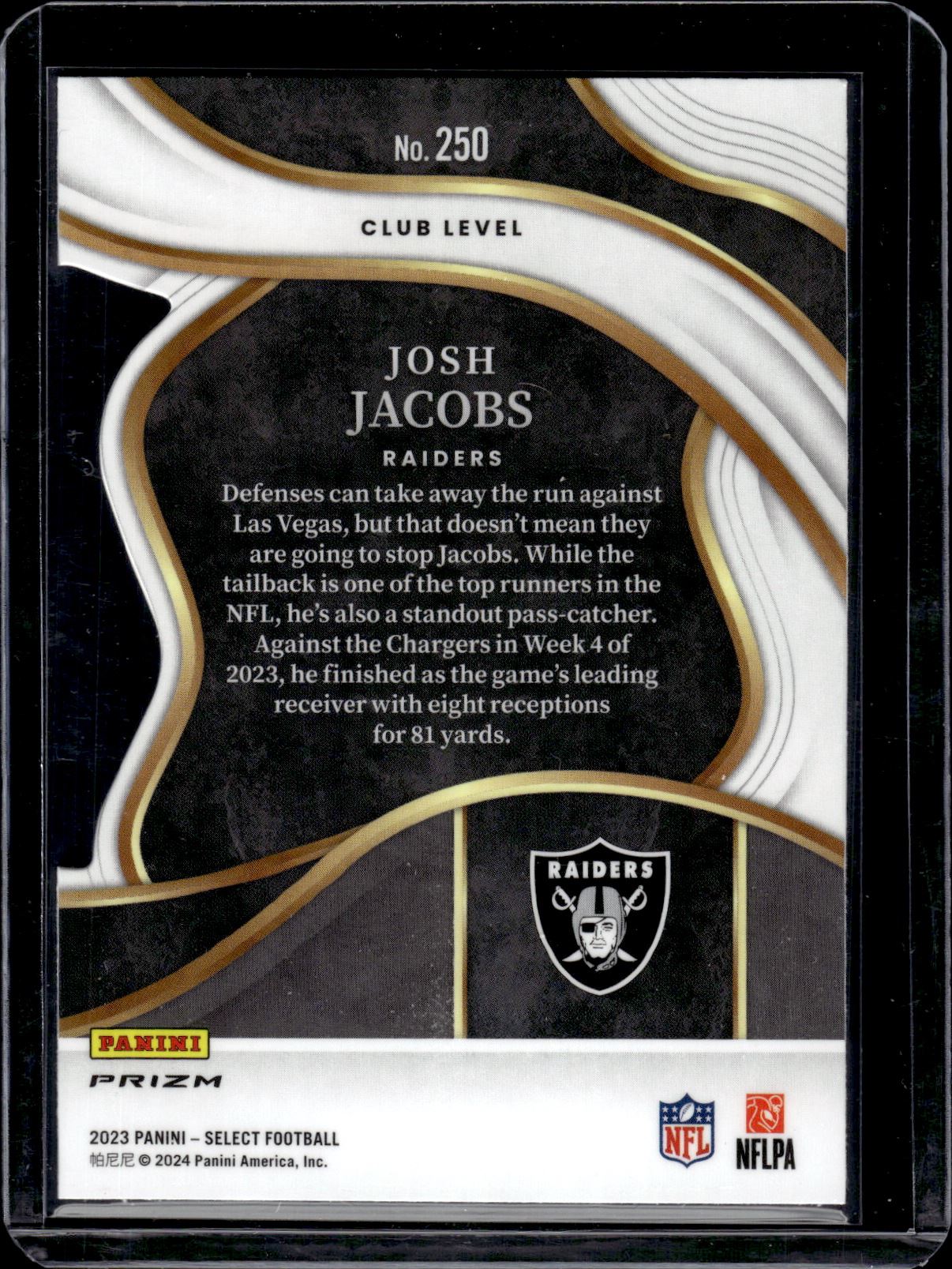 Josh Jacobs Red/Yellow Prizm Club Level Die Cut 2023 Select #250