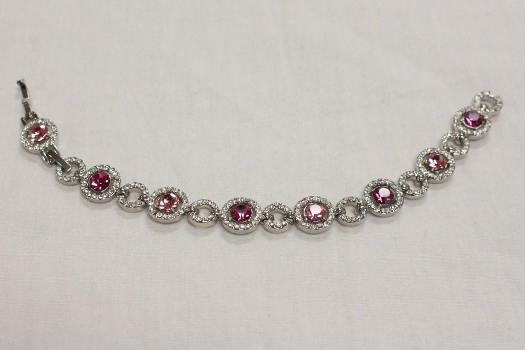 Joshua Lieff Designer Rhodium Plated Bracelet With Pink and Clear Swarovski Crystals