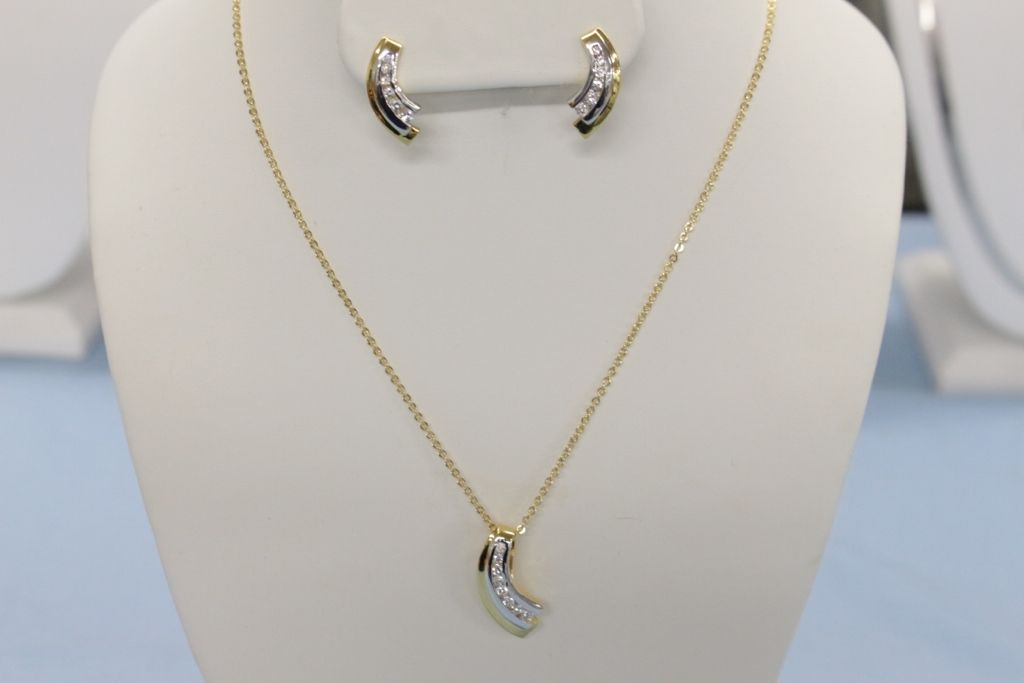 Joshua Lieff Designer Rhodium Plated Necklace/Pendant and Earrings With Clear Swarovski Crystals