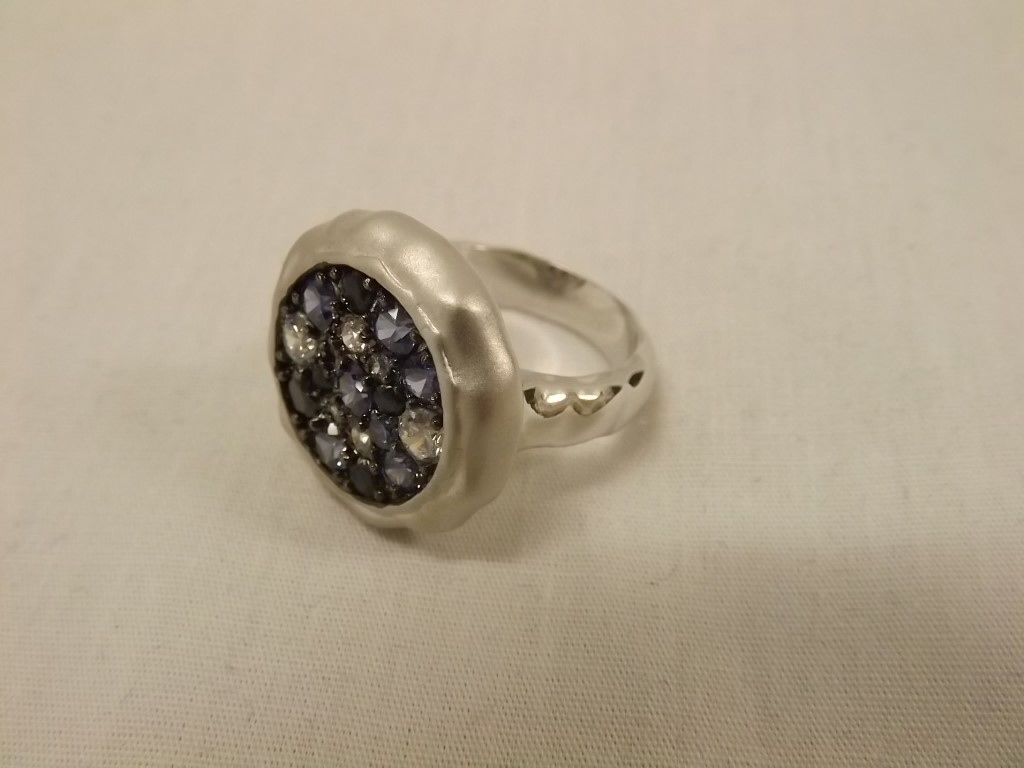 Joshua Lieff Designer Rhodium Plated Ring with Multi Colored Swarovski Crystals Size 7.75