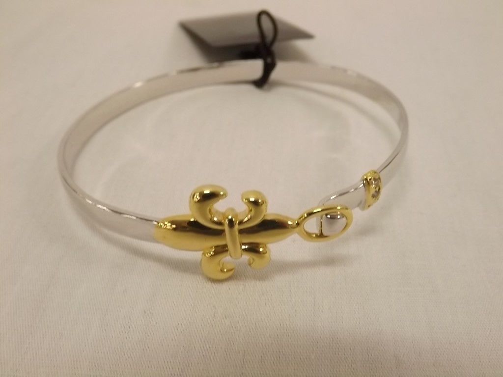 Joshua Lieff Designer Yellow Gold and Rhodium Plated Bangle Bracelet with Clear Swarovski Crystals