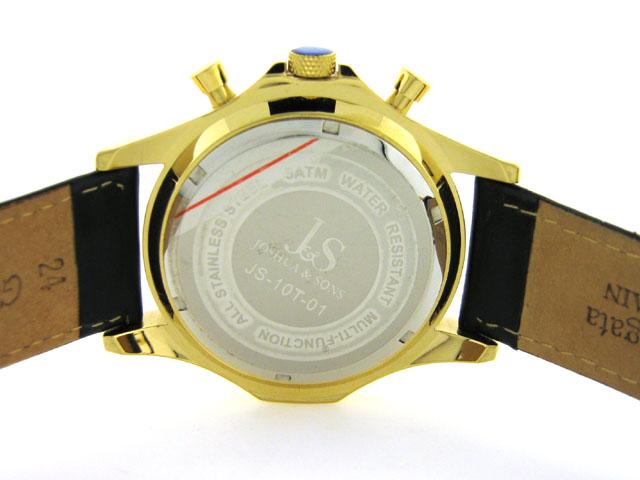 This is a Joshua and Sons Men's JS-10-01 'Augustus' Swiss Quartz Chronograph Watch with the following features: Precise Swiss-quartz movement; Mineral crystal; Case diameter: 49 mm; Stainless-steel case; sunray-silver dial; date function; chronograph functions; and Water-resistant to 165 feet (50 M)