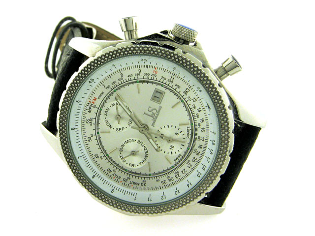 This is a Joshua and Sons Men's JS-10T-02 Swiss Quartz Chronograph Watch with the following features: Precise Swiss-quartz movement; Mineral crystal; Case diameter: 49 mm; Stainless-steel case; sunray-silver dial; date function; chronograph functions; and Water-resistant to 165 feet (50 M)