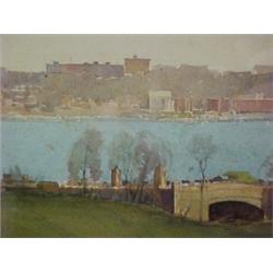Josiah Thomas Tubby, framed watercolor, view of Portland Maine, listed American, image measures 8" x 11" Estimate 140/250