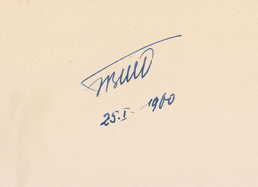 Longtime leader of Yugoslavia (born 1892) from 1945 until his death in 1980. Vintage ink signature on an off-white 5.5 x 4 card, dated January 25, 1960. In very fine condition. Accompanied by the original mailing envelope and a pre-printed compliments card.