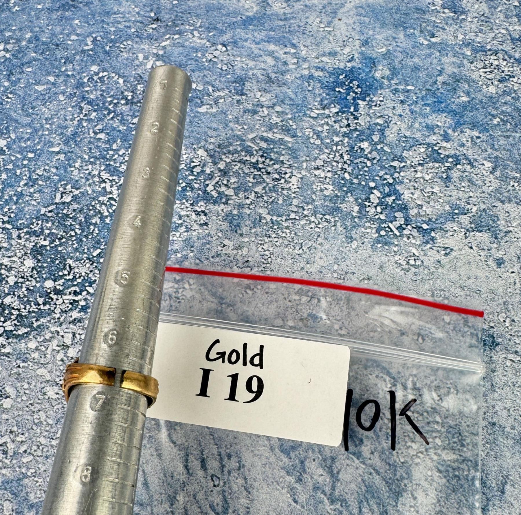 Size 6 3/4, but band is clipped. 9.57 grams.