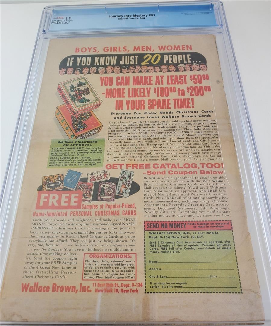 One Authentic and Original Journey Into Mystery #83 By Marvel Comics