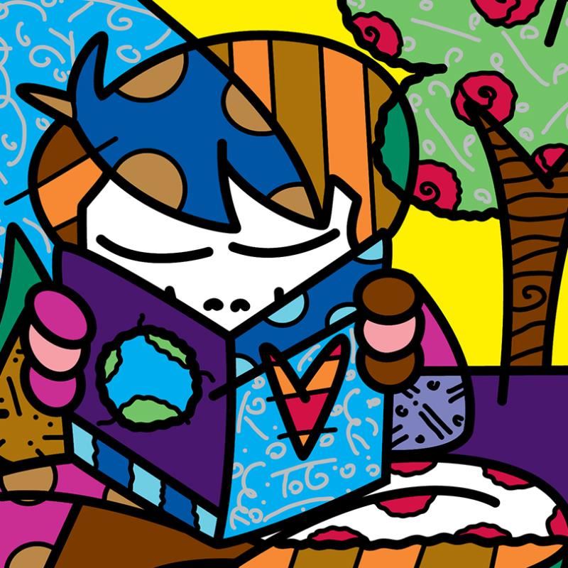 "Journey" is an open edition giclee on canvas by Romero Britto. The piece comes hand signed by the artist and is authenticated en verso with the official Britto stamp. Measures approximately: 8" x 8".