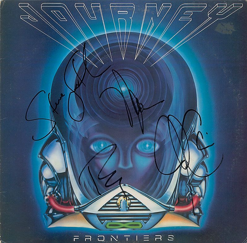 Frontiers album signed on the front cover in black felt tip by Ross Valory, Steve Smith, Neal Schon, and Jonathan Cain. In fine condition. The record is not included. Accompanied by a full letter of authenticity from PSA/DNA.