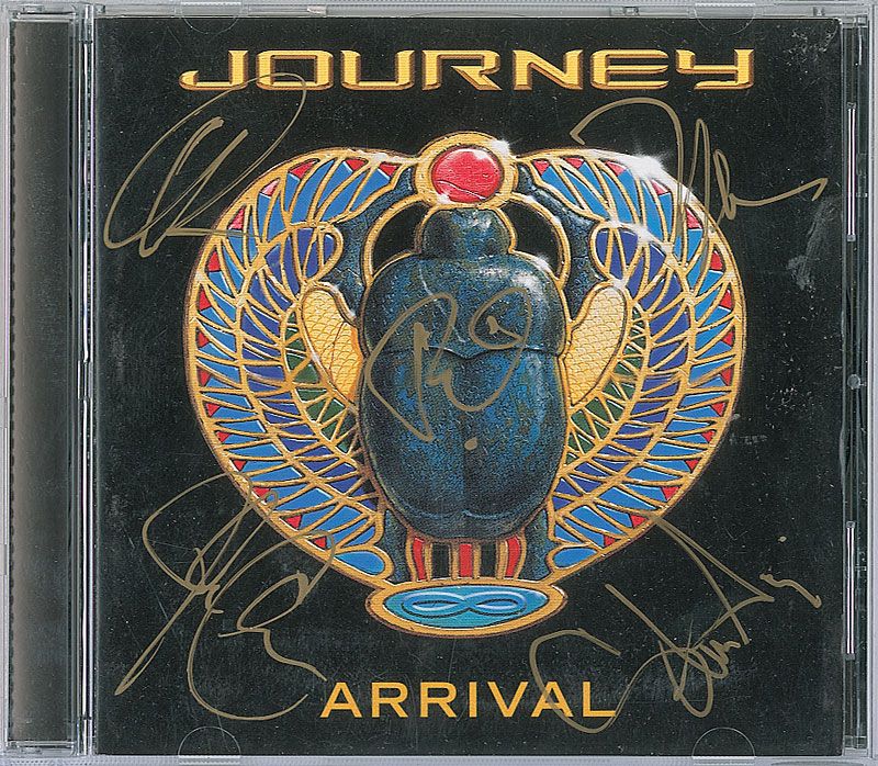 Arrival CD signed on the front cover of the booklet in gold ink by Neal Schon, Jonathan Cain, Ross Valory, Deen Castronovo, and Steve Augeri. In fine condition. The CD is included.