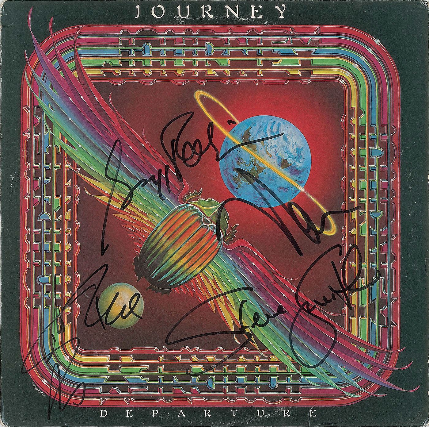 Departure album signed on the front cover in black felt tip by Steve Perry, Neal Schon, Gregg Rolie, Ross Valory, and Steve Smith. In fine condition. The record is included.