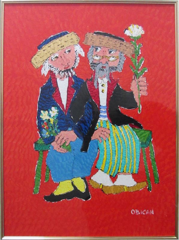 Jovan Obican, Two Men with Flowers, Painting