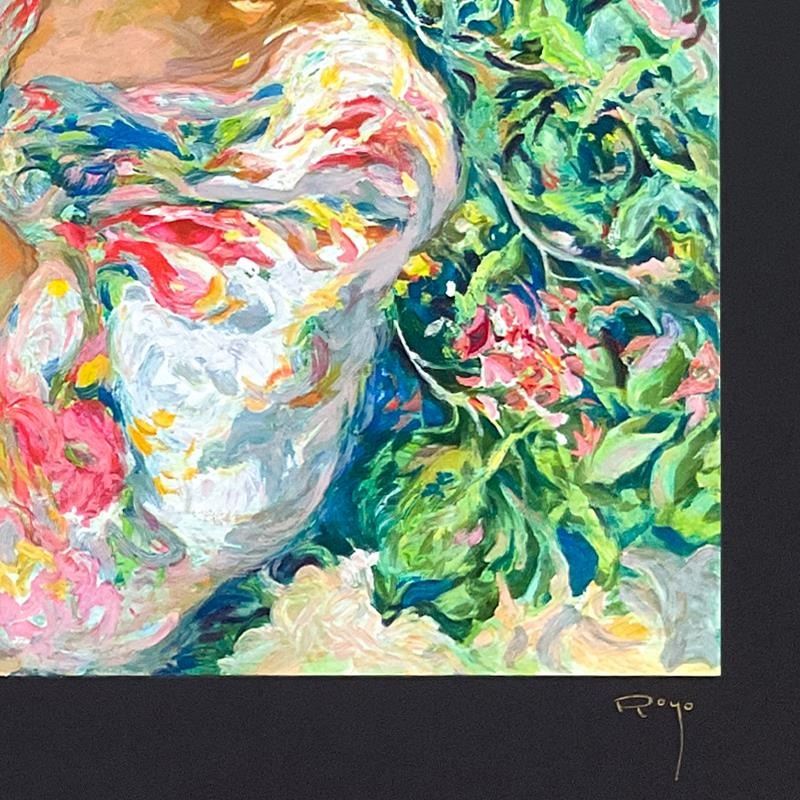 "Joven Con Costo De Flores" is a limited edition artist's proof on paper by Royo, numbered and hand signed by the artist. Includes Letter of Authenticity. Measures approx. 30.5" x 34.5" (border), 23.5" x 28.5" (image).
