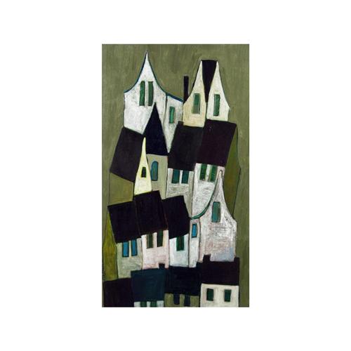 [Canadian b. 1936] ANCIENT VILLAGE ON THE HILLSIDE #1 Acrylic on canvas 38 x 22 in. Signed & titled.