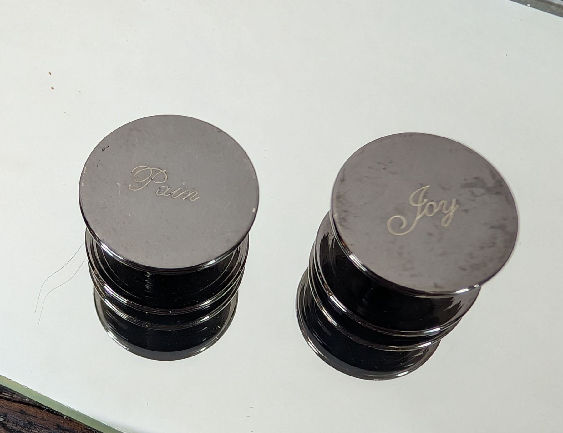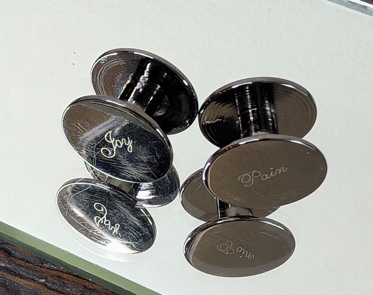 Joy/Pain silver tone cufflinks or tuxedo studs