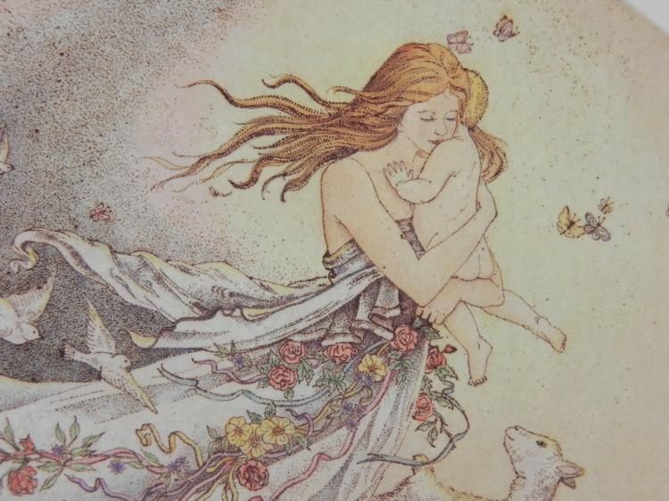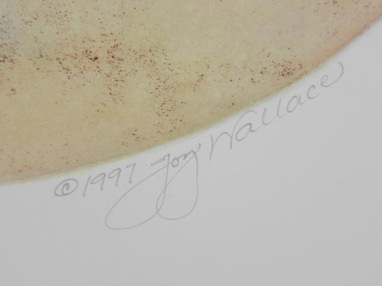This scene appears to be straight out of a children's book, and it presents lovely details and magic for a mother or child. Artist: Joy Wallace Signature: Signed by the artist in pencil, lower rightMedium: Lithograph on paperYear: 1997Size: 13" x 12" Condition: ExcellentBiography:http://www.joywallace.com/meetjoy.htm