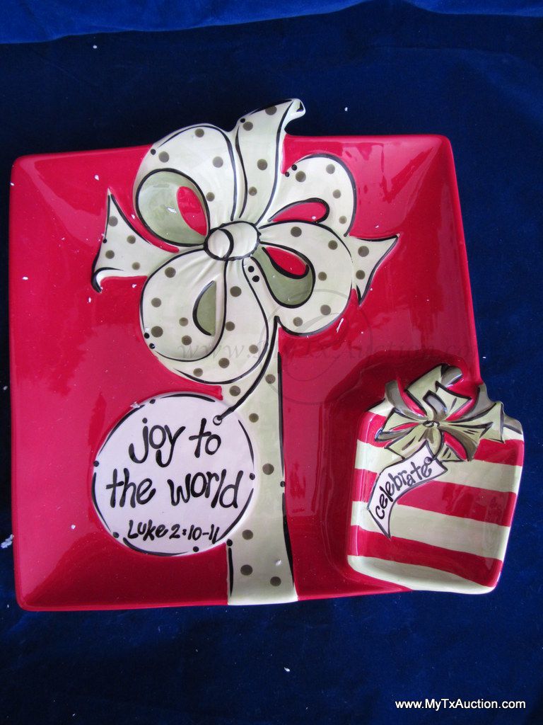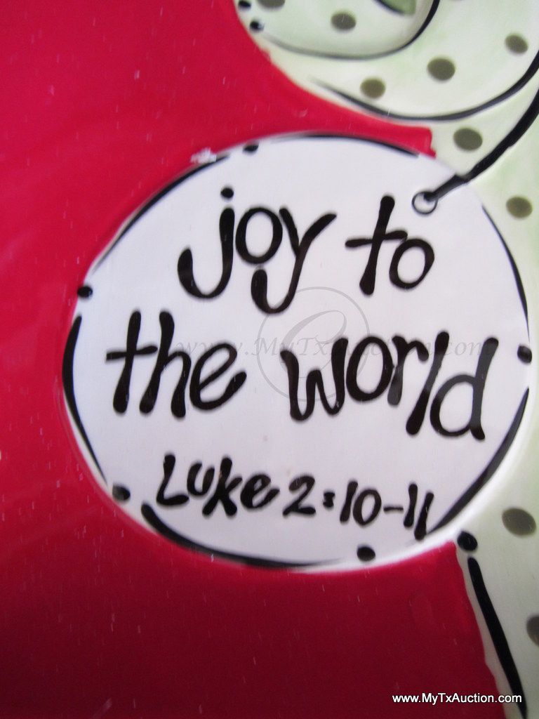 Joy to the World…Luke 2:10-11 is hand painted on the plate, Celebrate is painted