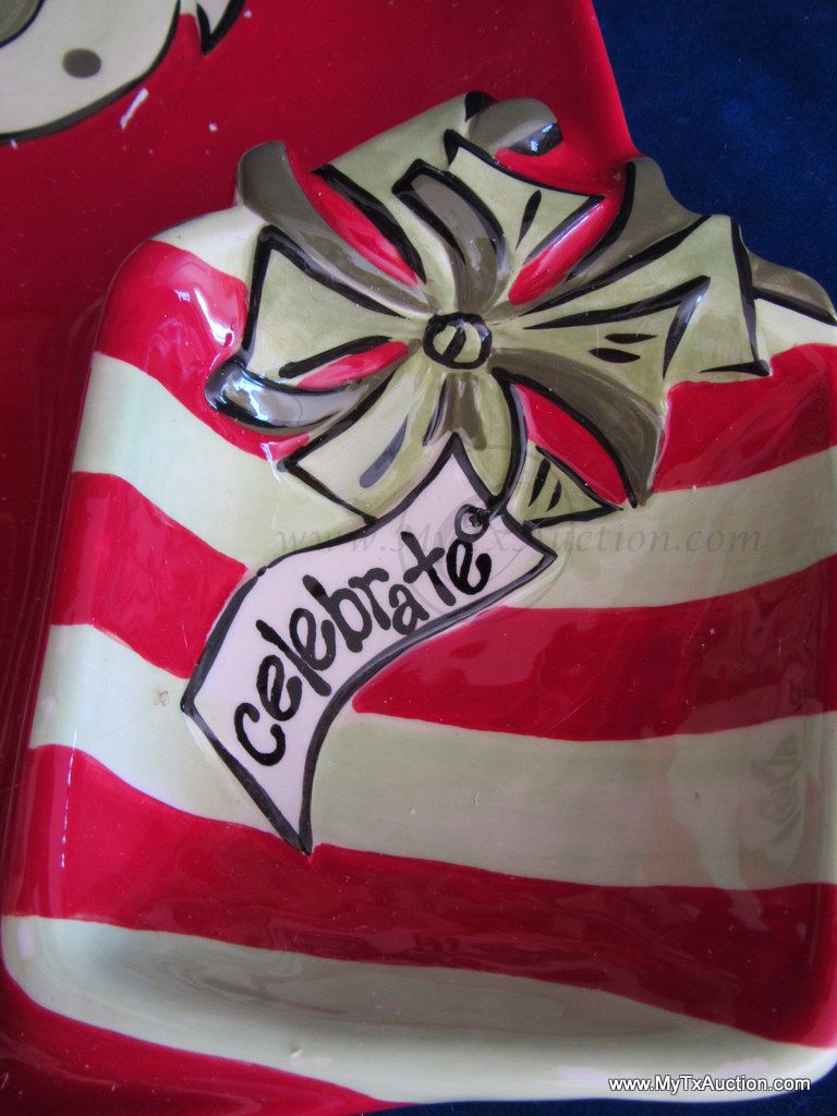 Company. This present shaped dish is part of the Joy to the World Collection by Burton & Burton. The dish is decorated with festive stripes and dots.