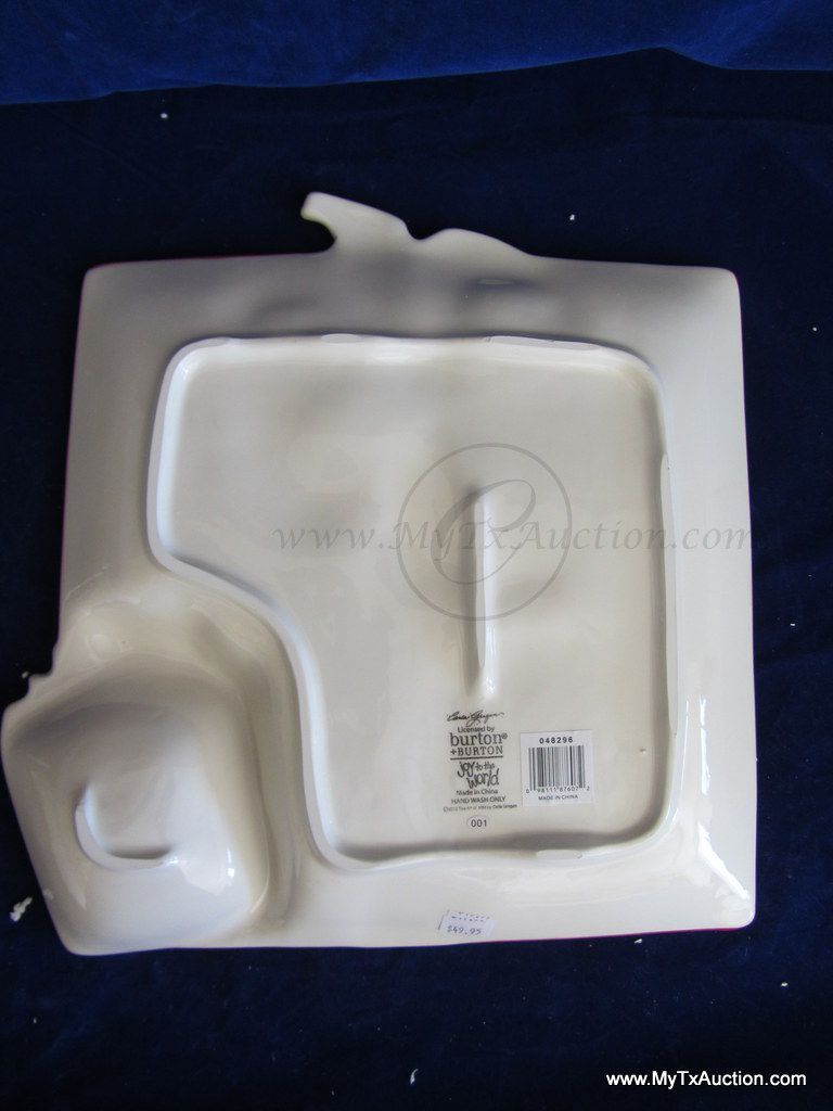plate is FDA approved and measures 13" x 13". NIB still in Styrofoam and tagged