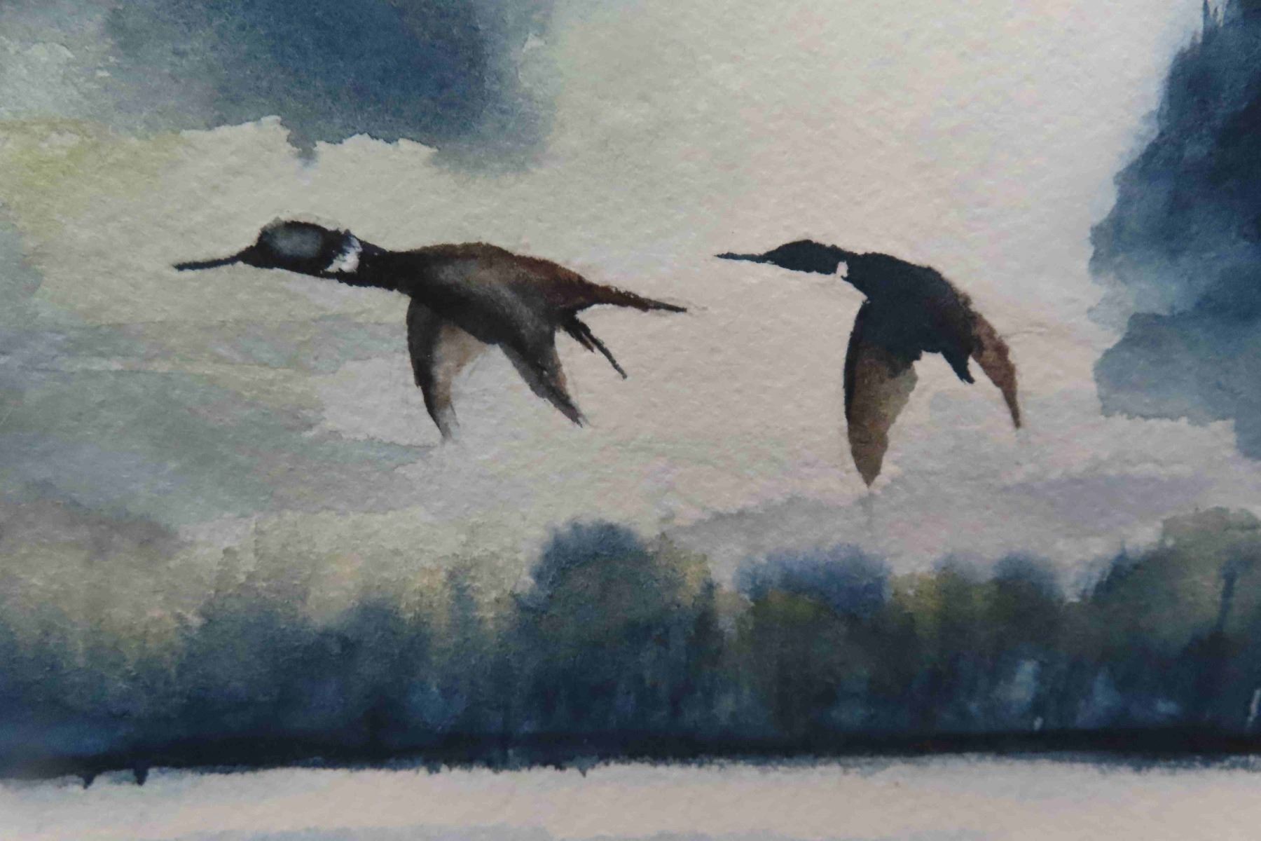 Joyce McLean Water Colour Painting Geese Signed 27x21