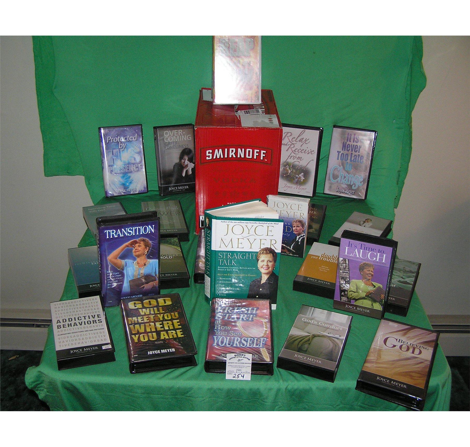 Large box of Joyce Meyer motivational and inspirational books and video tapes est. value $100.00-$125.00