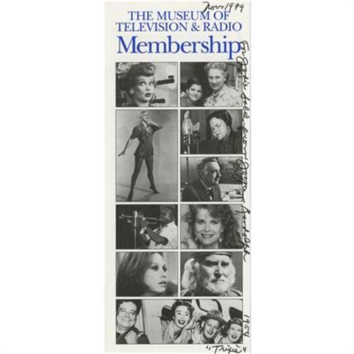 <B>Joyce Randolph Signed Brochure.</B></I> A Museum of Television and Radio membership brochure, inscribed, signed, and dated November 1999 by the <I>Honeymooners</B></I> actress in black felt tip. In Excellent condition.<BR><BR><b>Shipping:</b> Flat Material, Small (<a target="_blank" href="http://www.heritageauctions.com/common/shipping.php">view shipping information</a>)