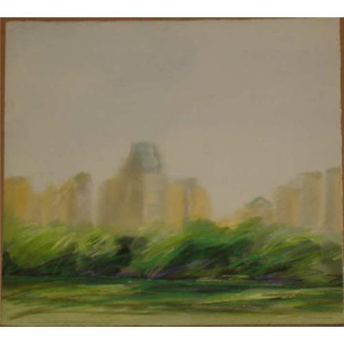An abstract landscape of Central Park in the spring. 24.5x22.5 inch pastel and watercolor on heavyweight paper, signed by the artist. Circa 1980?s. Domestic shipping $60, International depends upon location. Joyce Rezendes studied with Diebenkorn, Oliveira and Hasegawa at California College of Arts and Crafts in Oakland, where she was a scholarship student for her BFA (1957) and with Kokoschka at his Summer Academy in Salzburg during her eighteen months of travel in Europe on a B. Alexander Scholarship. Living in Florence for two winters, she had a one woman show at the Casa Di Dante. She has devoted a number of years to abstractions of the Hopi Indian tribe ceremonies and lore.