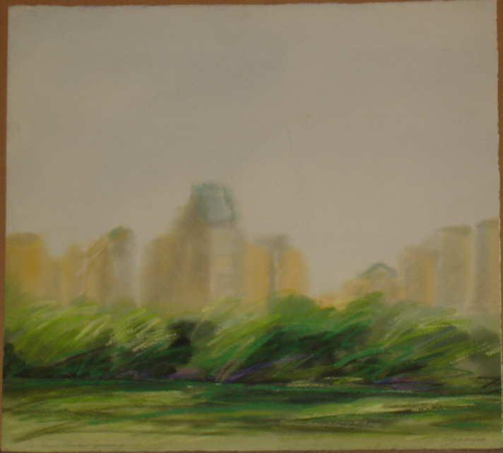 An abstract landscape of Central Park in the spring. 24.5x22.5 inch pastel and watercolor on heavyweight paper, signed by the artist. Circa 1980’s. Domestic shipping $125, International depends upon location.