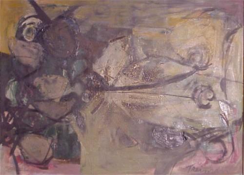Joyce Treiman (b. 1922) American LANDSCAPE, 1950’s, oil painting on canvas, 22 x 30 1/2", signed lower right, framed, with artist’s Illinois address inscribed on the verso, surface soiling and natural cracking. Provenance: Art Rental Service of the Art Institute of Chicago.