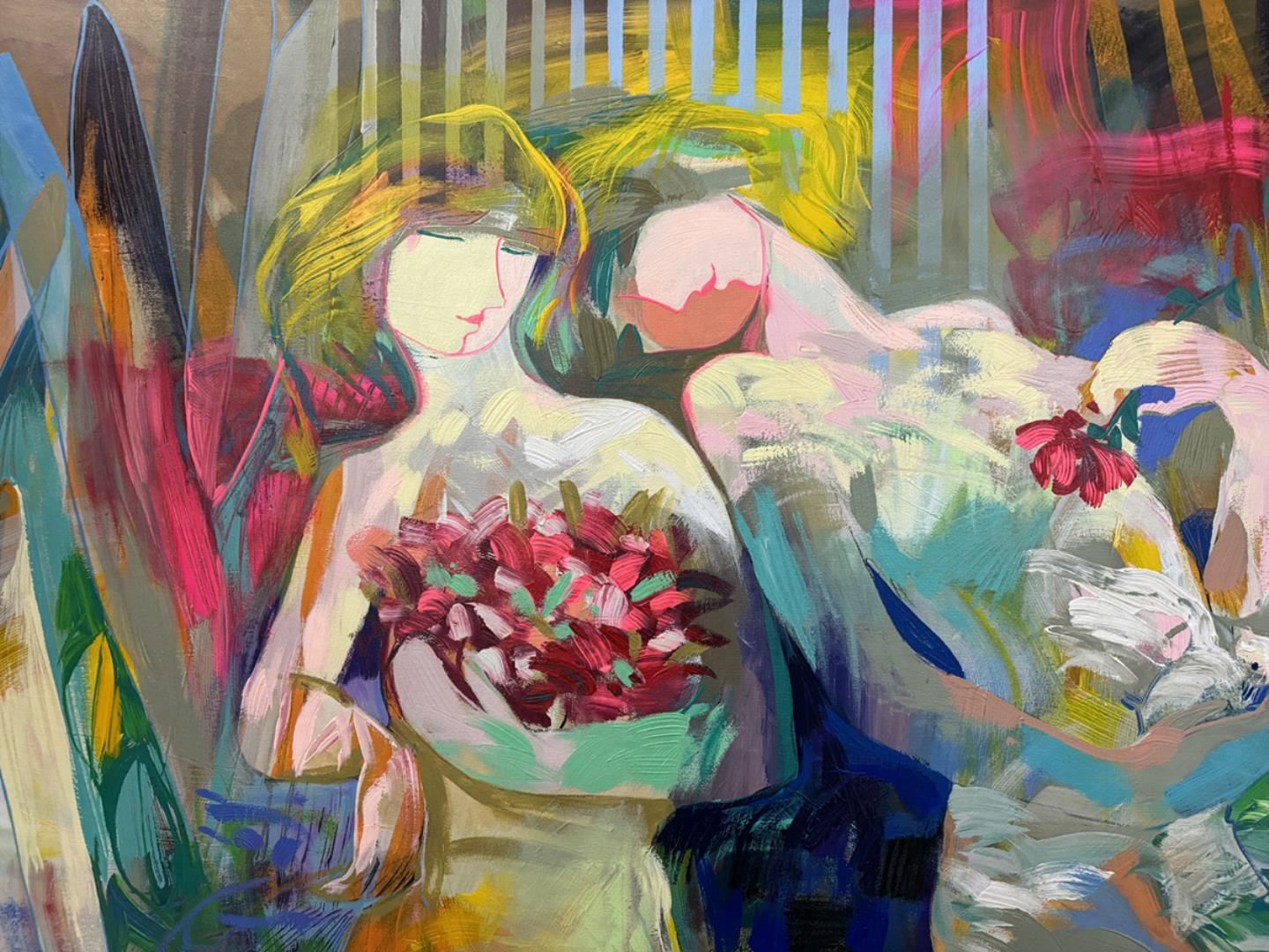 Stunning original acrylic on canvas. Hand signed by artist. This artwork comes beautifully framed and ready to hang Art size 56x56.