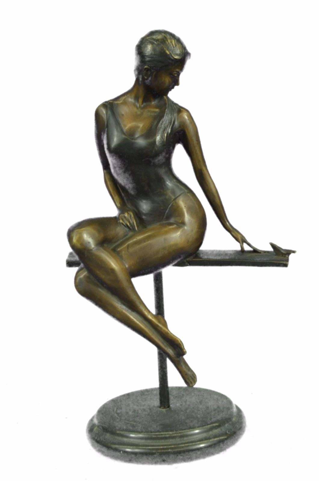 The quality of this refined art is rarely found in re-casted bronzes. This sculpture was cast using the Lost Wax Method and is mounted on a gorgeous heavy marble base with a delightful bronze trim around the base. Bronze Dimensions with Marble Base: Height 18 X Width 10 inches. Weight: 14 LBS. Inventory: 63-282596336