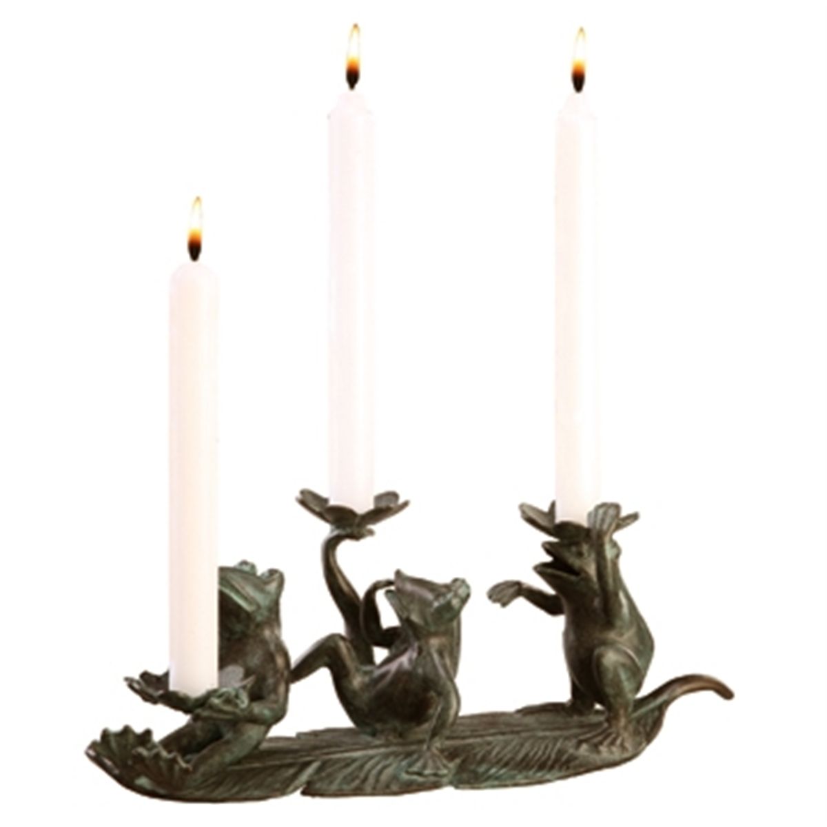 Joyous Frog Trio Candleholder - 5"H 12"W 4.5"D - Brass