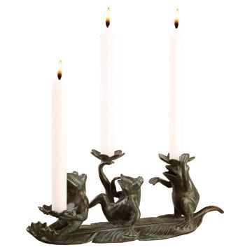 Joyous Frog Trio Candleholder - 5"H 12"W 4.5"D - Brass