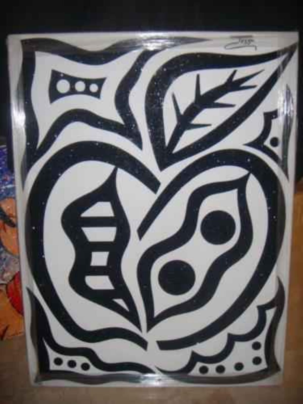 Jozza "Apple (Black/whte)" Original One of Kind Mixed Media Acrylic on Stretched Canvas, Hand Signed Dimensions: 48 x 36 inches