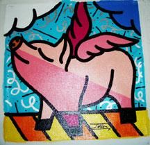 If you've ever used the idiomatic expression when pigs fly, you'll welcome this little winged piggy, ready to take flight! * Artist: JozzaSignature: Signed by the artistTitle: Pigs FlyMedium: Acrylic on canvasSize: 12 x 12 inches Condition: Excellent Biography: * Jozza (1958- ) was born into an artistic family in a small town in Brazil. His mother was an art teacher and encouraged his artist passions as a young child. He began creating wooden sculptures. He married at a young age, and couldn't afford art school as he was supporting a family.In 1996, Jozza relocated to Miami with his wife and 2-year old daughter, and began to pursue a career in art. Jozza had his first exhibition at Biscayne Tower I in downtown Miami, and soon began getting other shows. Today, Jozza's art can be found in galleries across the USA, Spain, Germany, Brazil and Argentina.He moved on to the New York ArtExpo. In 2009, Jozza was given the rare distinction of being able to create original and limited edition fine art of Disney characters, as artist Peter Max had done before him. *