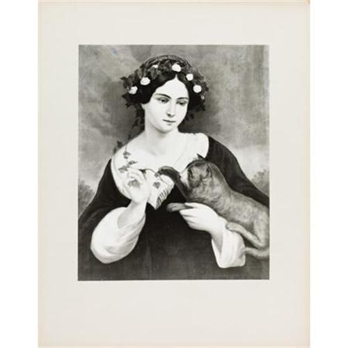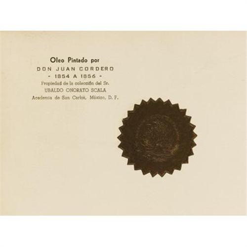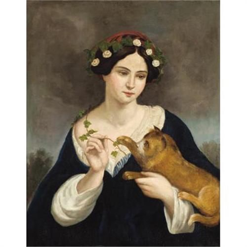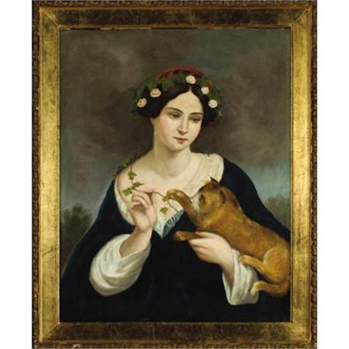 <B>JUAN CORDERO (Mexican, 1822-1884)</B></I><BR><I>Portrait of a Woman with a Cat and Ivy</B></I><BR>Oil on canvas<BR>29 x 23-1/2 inches (73.7 x 59.7 cm)<BR> <BR>PROVENANCE:<BR>Sr. Ubaldo Onorato Scala Collection, Mexico.<BR><BR>This lot is accompanied by a certificate from the Academia de San Carlos, Mexico, D. F.<B>Condition Report:</B> Relined, re-varnished, in-painting throughout<BR><BR><b>Shipping:</b> Requires 3rd Party Shipping (<a target="_blank" href="http://www.heritageauctions.com/common/shipping.php">view shipping information</a>)