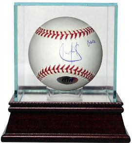 Juan González is a former Major League Baseball right fielder. González bats and throws right-handed. He was one of the premier run producers of the 1990s, averaging 117 runs batted in per season between 1991 and 1999. He won the AL MVP award in 1996 and 1998. Juan Gonzales has hand autographed this Official Major League Baseball with GONZO inscription. Elite Sports Marketing Hologram and Certificate of Authenticity. Note: Glass Display Case shown IS included