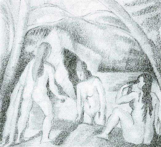 Artist: Juan Gris - Title: Bathing (Cezanne) - Medium: Fine Art Reproduction Giclee on Canvas - Image Size: Approximately 18.25 inches x 20 inches - Unframed on Unstretched Canvas - Biography: José Victoriano González-Pérez, better known as Juan Gris, was a Spanish painter born in Madrid who lived and worked in France for most of his active period. Closely connected to the innovative artistic genre Cubism, his works are among the movement's most distinctive.
